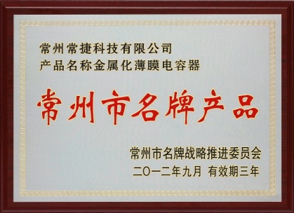 年公司生产的金属化薄膜电容器获得常州市名牌产品
