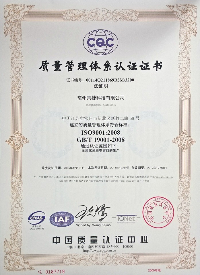 | 高新技术企业 | 工程技术研究中心 | 江苏省新能源金属化薄膜电容器工程技术研究中心 | 常州市名牌产品 |